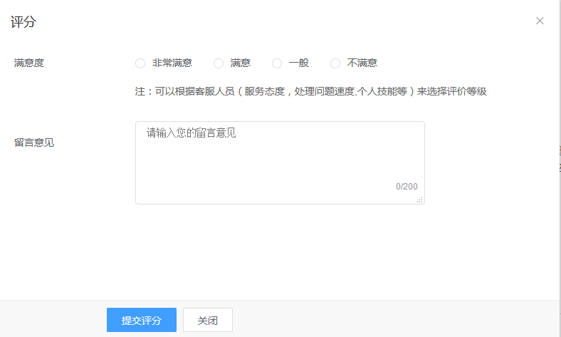 4、支持用户评分,评价,为售后绩效考核提供数据。